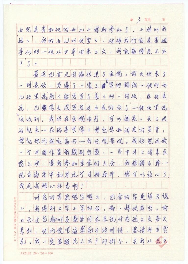 1984年1月16日,冰心写下《春节贺叶圣老九十大寿、巴金八十诞辰》。文中说,叶圣陶的字越写越大,巴金的字越写越小——她收到“大字小字”,都“一样很高兴”。 字迹的缩放,是生命在收束时的坦诚;而冰心的“高兴”,蕴含着一种历经沧桑后的通透与珍重。
