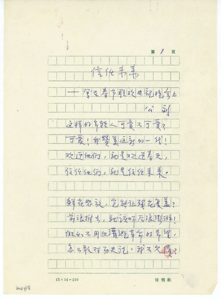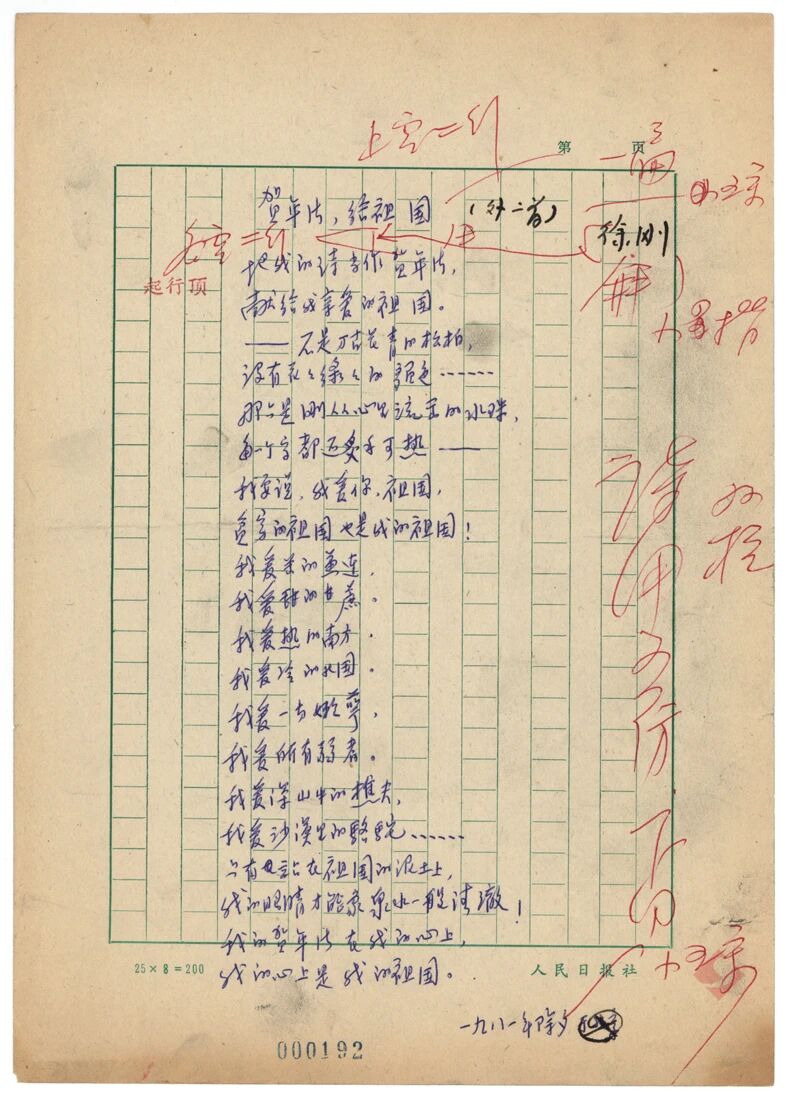 1981年除夕,诗人徐刚写下《给祖国的贺年卡》:“把我的诗当做贺年卡/献给亲爱的祖国——不是万古长青的松板,没有花花绿绿的颜色……”