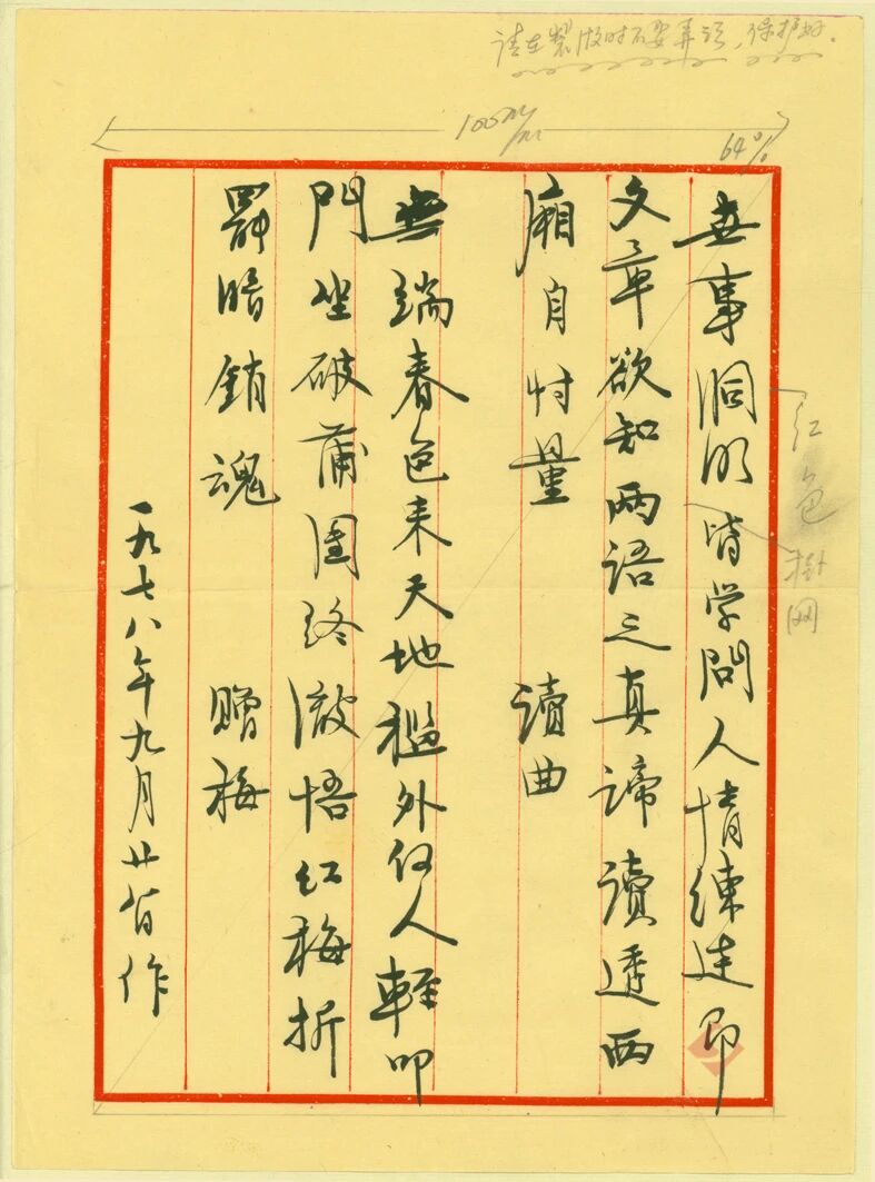 40年后,他为《红楼梦图咏》题诗四首,《补裘》《葬花》《读曲》《赠梅》的手稿如今藏于现代文学馆。从背诵到题咏,他用一生完成了对古典的致敬与交接。