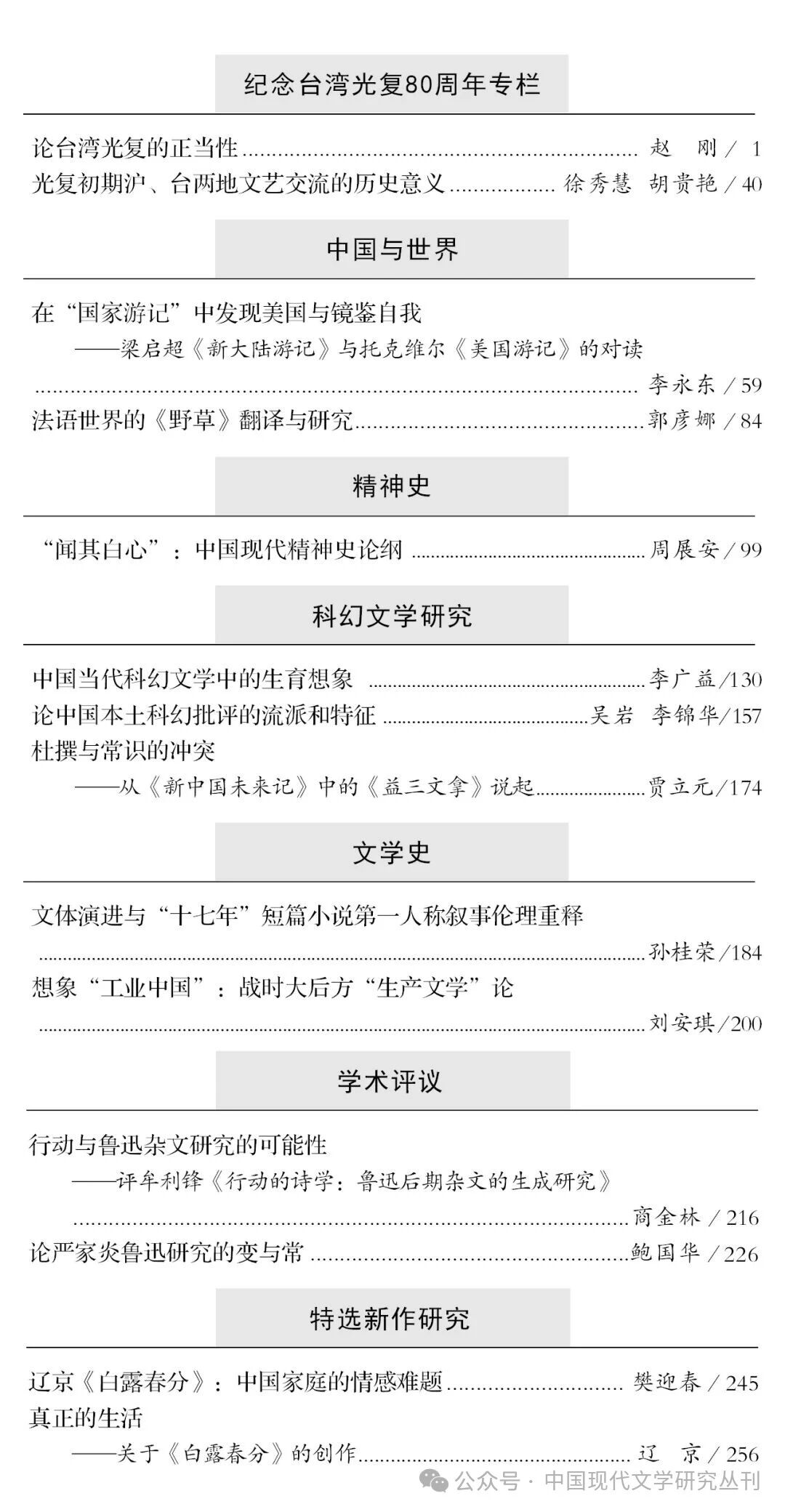 《中国现代文学研究丛刊》2025年第12期目录