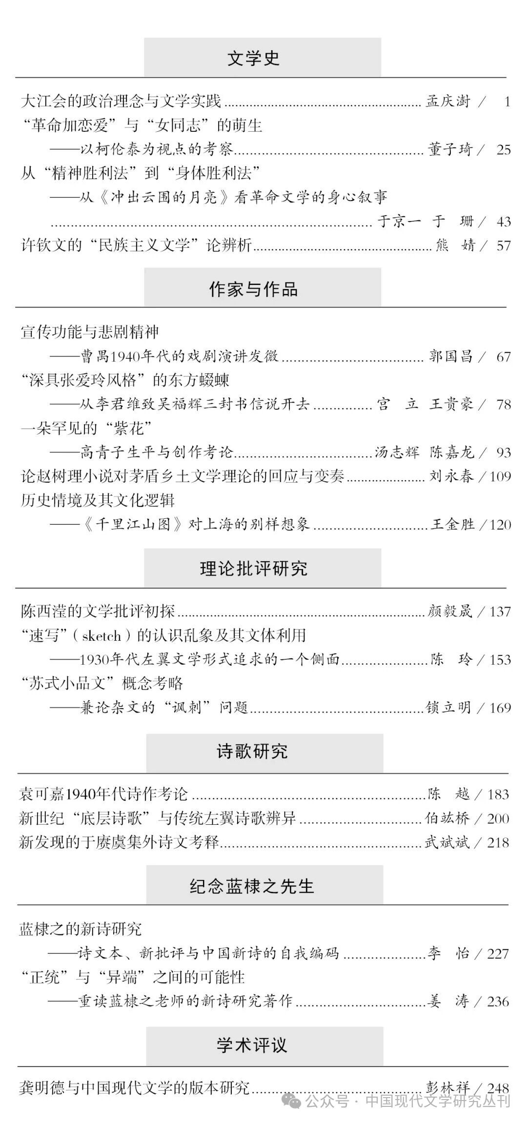 《中国现代文学研究丛刊》2026年第3期目录