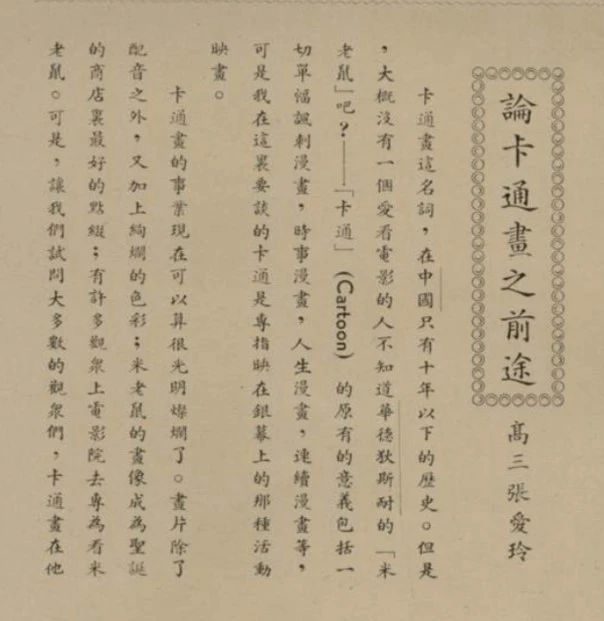 张爱玲:《论卡通画之前途》,《凤藻》1937年第17期