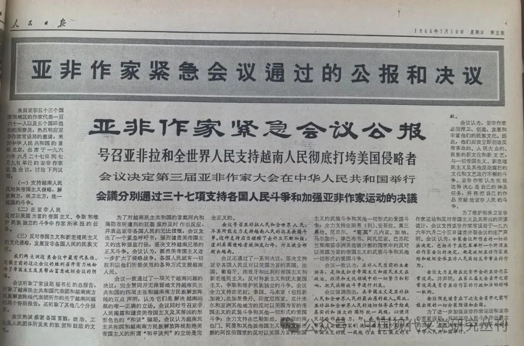 [52][53]《亚非作家紧急会议公报》,《人民日报》1966年7月10日。