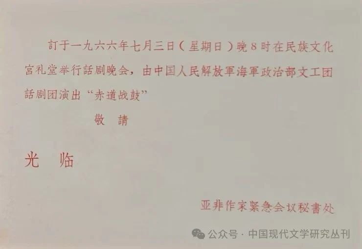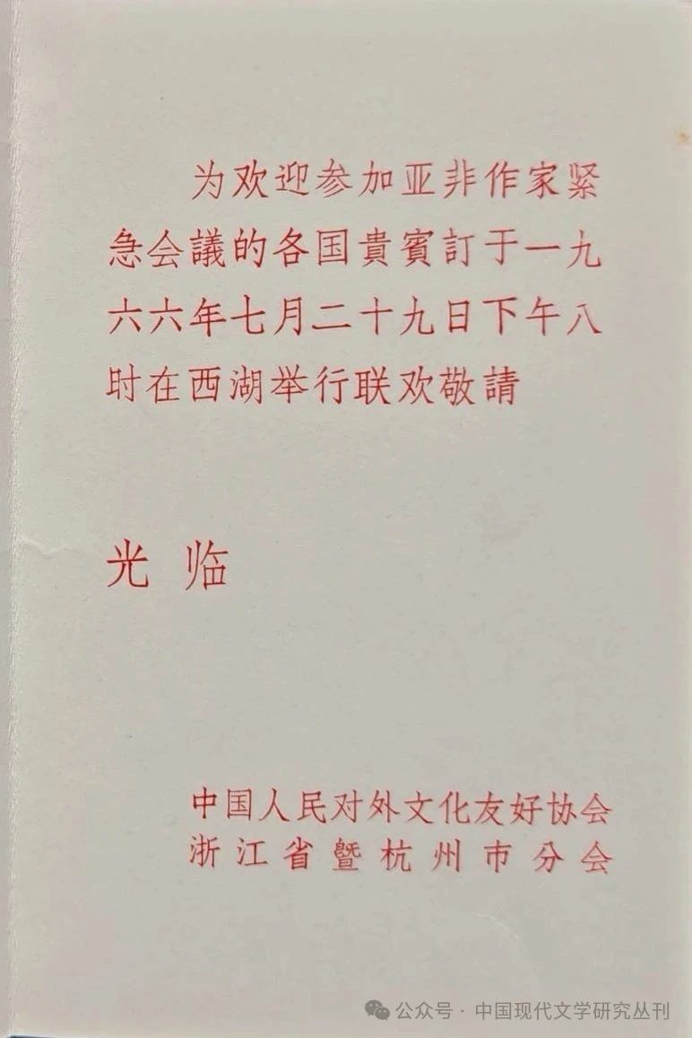 杭州群众与亚非作家联欢邀请函