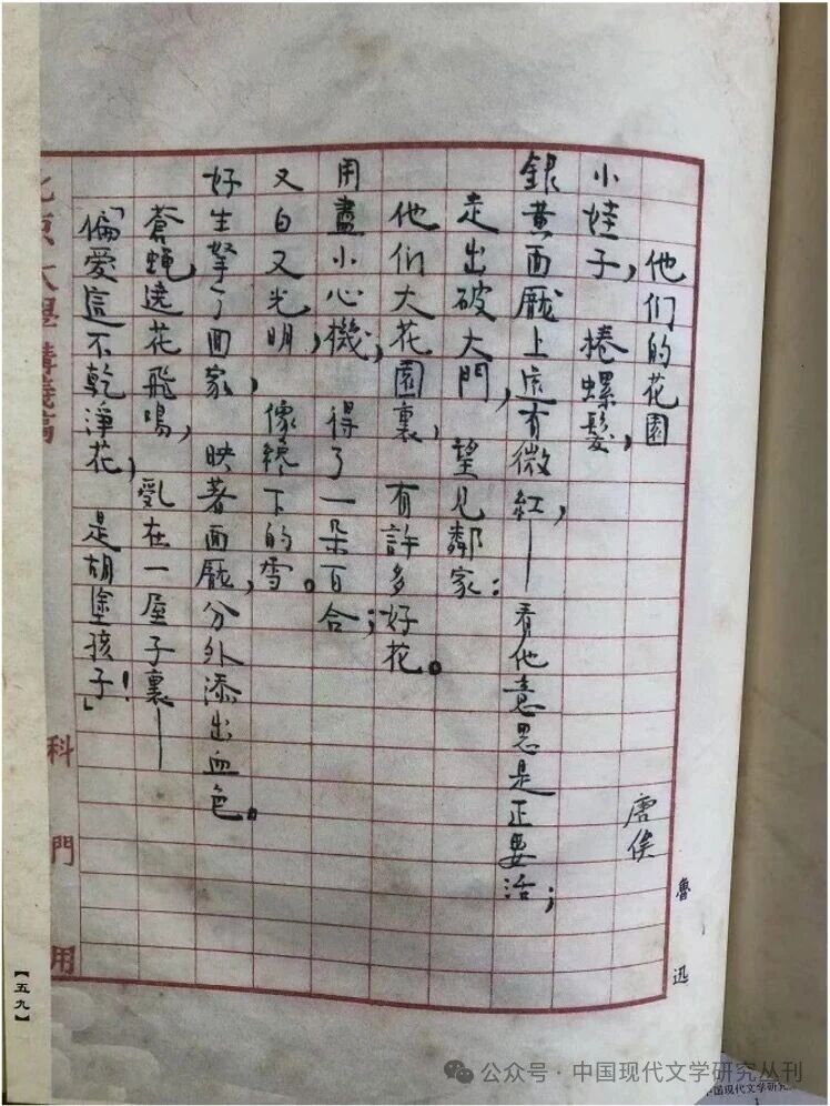 周作人代抄《他们的花园》,《初期白话诗稿》诗末署名“唐俟”为鲁迅自己所写