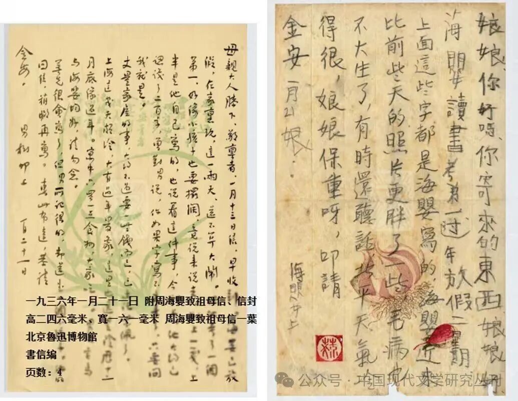 1936年鲁迅致母亲信(附周海婴致祖母信)