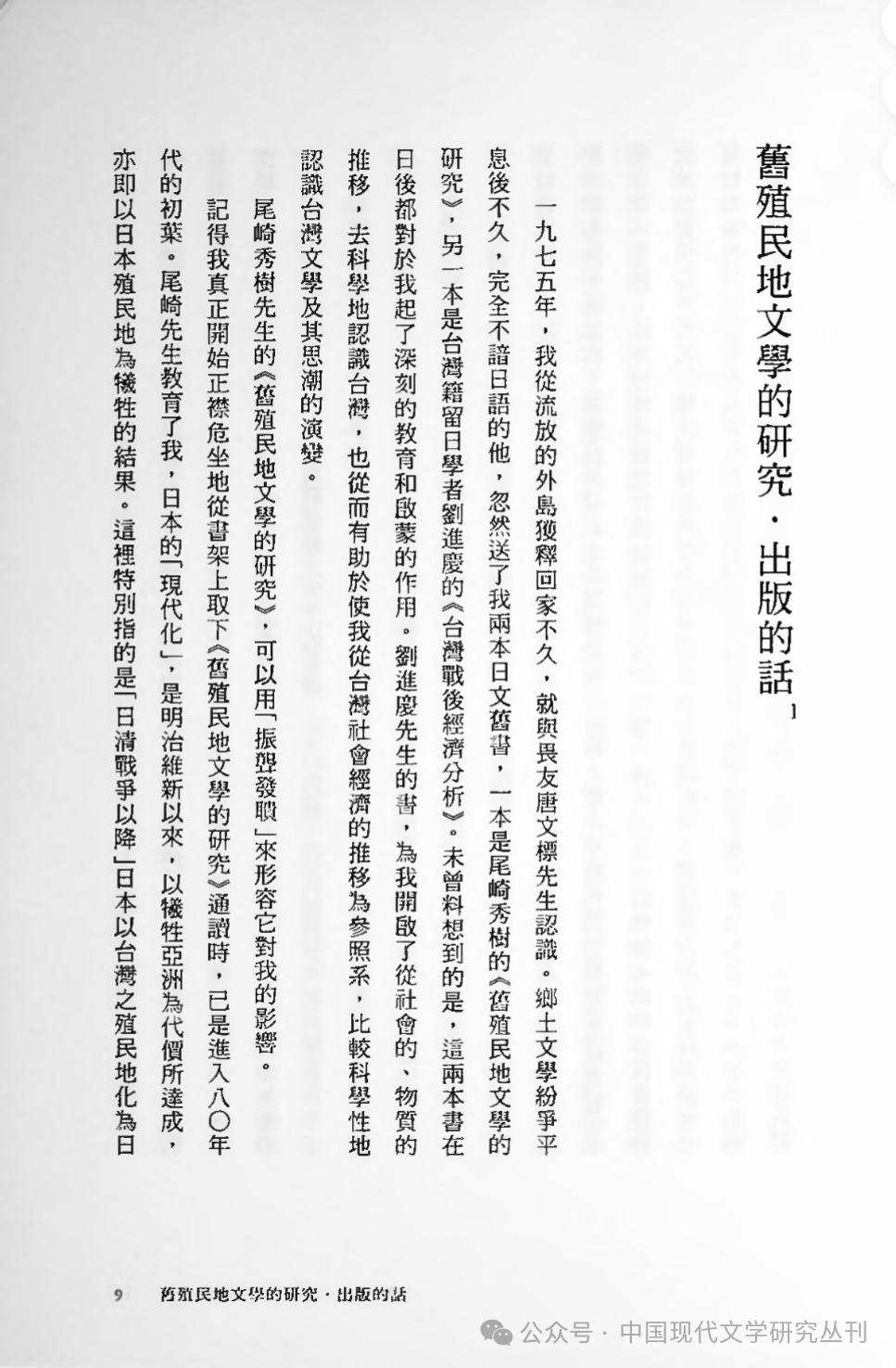 陈映真:《旧殖民地文学的研究·出版的话》,《陈映真全集》第22卷,人间出版社2017年版
