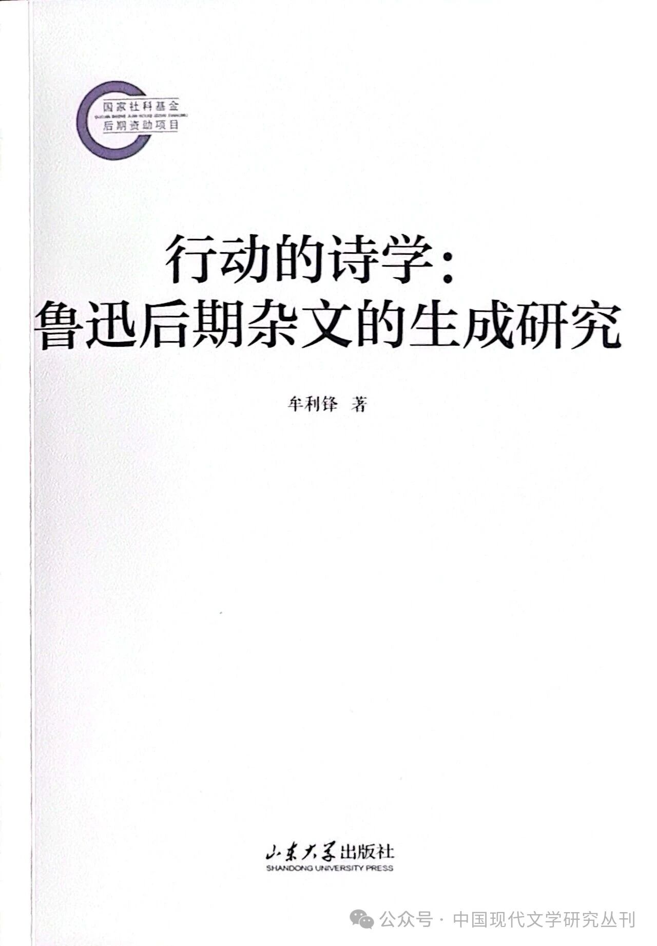 牟利锋:《行动的诗学:鲁迅后期杂文的生成研究》,山东大学出版社2025年版
