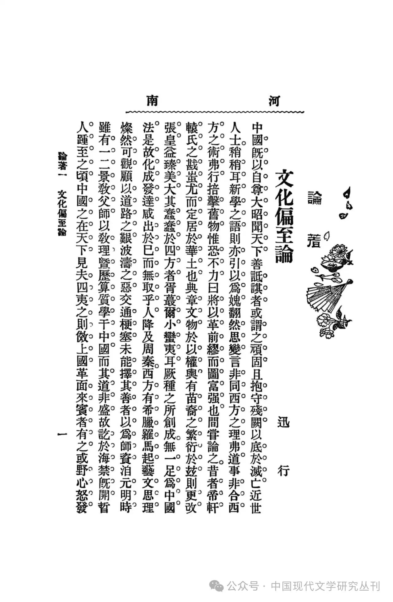 迅行(鲁迅):《文化偏至论》,《河南》杂志第七期,1908年