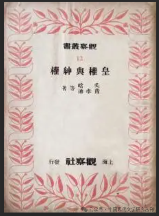 费孝通、吴晗等著《皇权与绅权》,上海观察社1948年初版