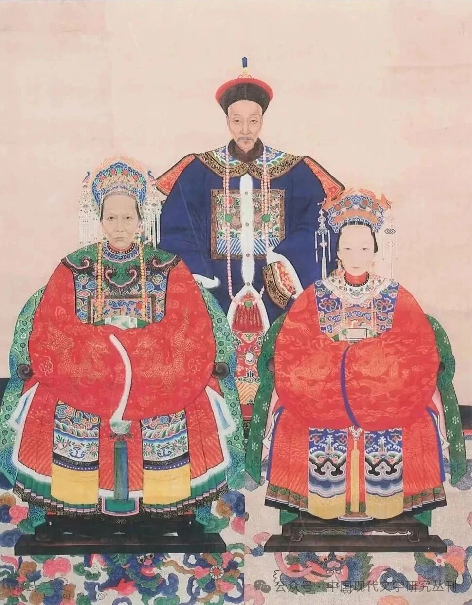 鲁迅祖父周福清与祖母孙氏、继祖母蒋氏彩绘像
