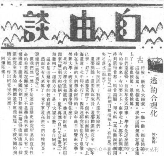 《“逃”的合理化》,《申报·自由谈》1933年1月30日