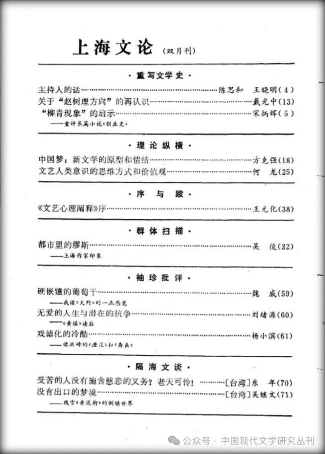 《上海文论》1988年第4期开设“重写文学史”专栏并发表“主持人的话”