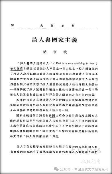 梁实秋:《诗人与国家主义》