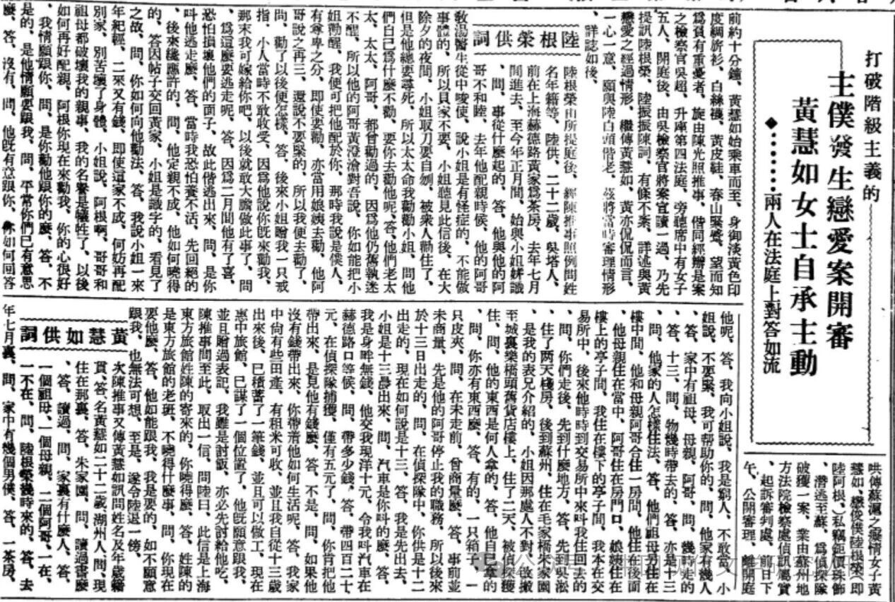 [39]《打破阶级主义的主仆发生恋爱案开审,黄慧如女士自承主动》,《时报》1928年8月26日。