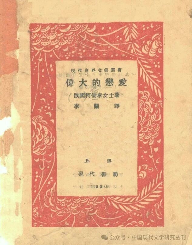 柯伦泰著、李兰译:《伟大的恋爱》,现代书局1930年版