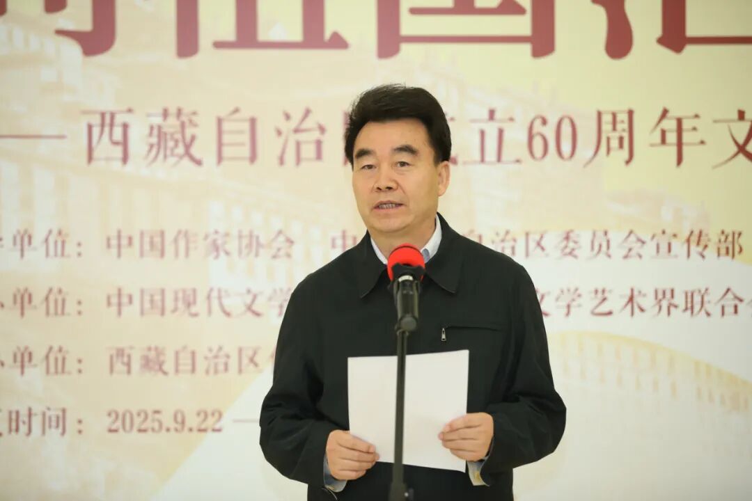 汪海洲表示,“向祖国汇报——西藏自治区成立60周年文学成就展”是西藏自治区成立60年来第一次在京举办的文学类展览,旨在全景展现西藏文学及广大作家深入践行习近平文化思想,在时代发展中坚持传统与现代、叙事与抒情相结合,为人民书写、为人民放歌的美好景象,展现西藏60年来文学创作的辉煌成绩。此次展览承载着西藏作家对党和国家的赤子之心,凝聚着雪域儿女对中华文化的热爱,为展示社会主义现代化新西藏的良好形象发挥了积极作用。希望广大作家以铸牢中华民族共同体意识、推进中华民族共同体建设为主线,从各族干部团结一心、努力拼搏建设社会主义现代化新西藏的火热实践中汲取养分,用文学的表达讲好新时代新西藏的故事,推出更多无愧于时代、无愧于人民的优秀文学作品。