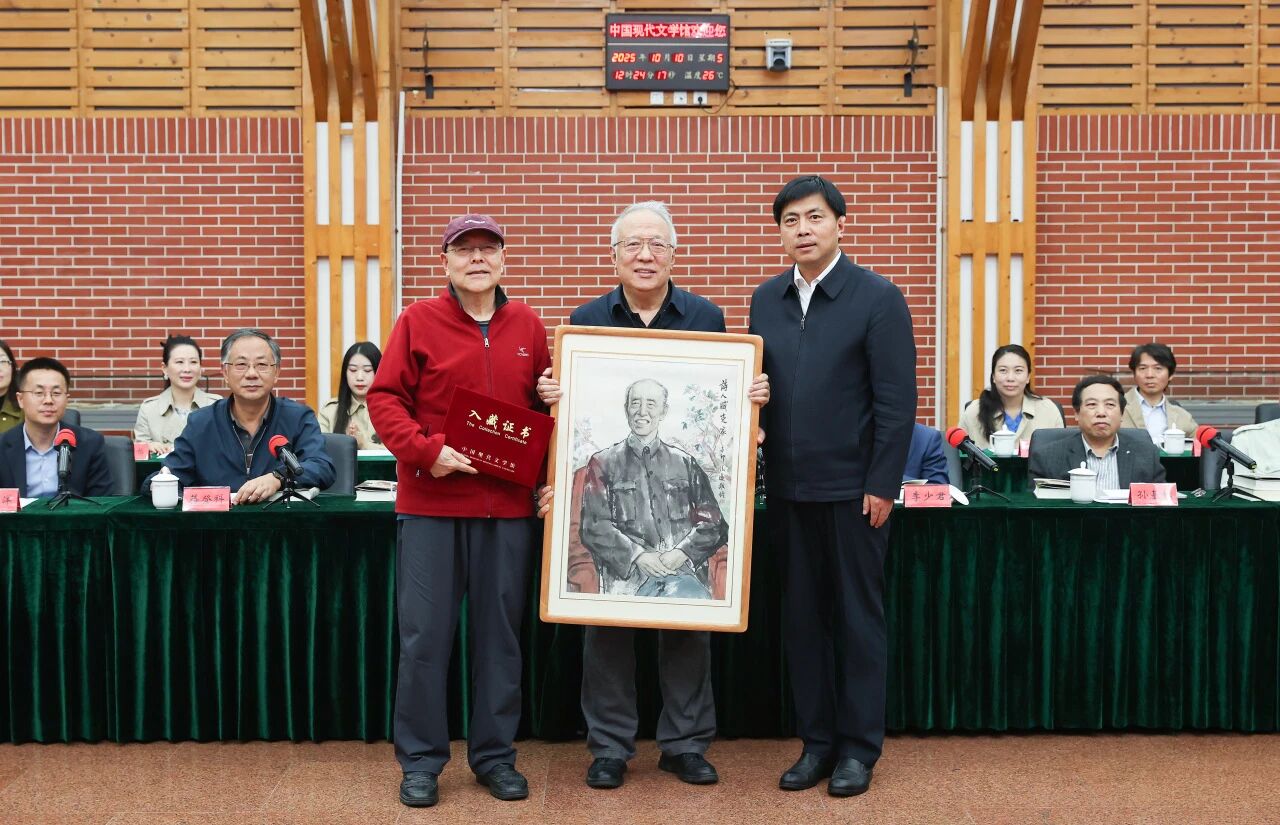 画家纪清远、李培禹捐赠了画作《诗人臧克家》,中国现代文学馆常务副馆长王军接受捐赠,并颁发入藏证书