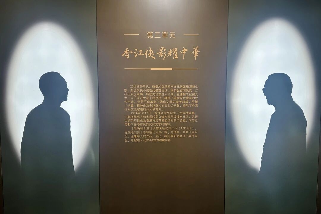 移步第三单元「香江侠影耀中华」,梁羽生与金庸的江湖由此展开——从《新晚报》连载的《龙虎斗京华》到《明报》创刊号,武侠小说如何在报摊茶楼间生根发芽,最终成为全球华人的文化公约数,在这里得到了生动呈现。