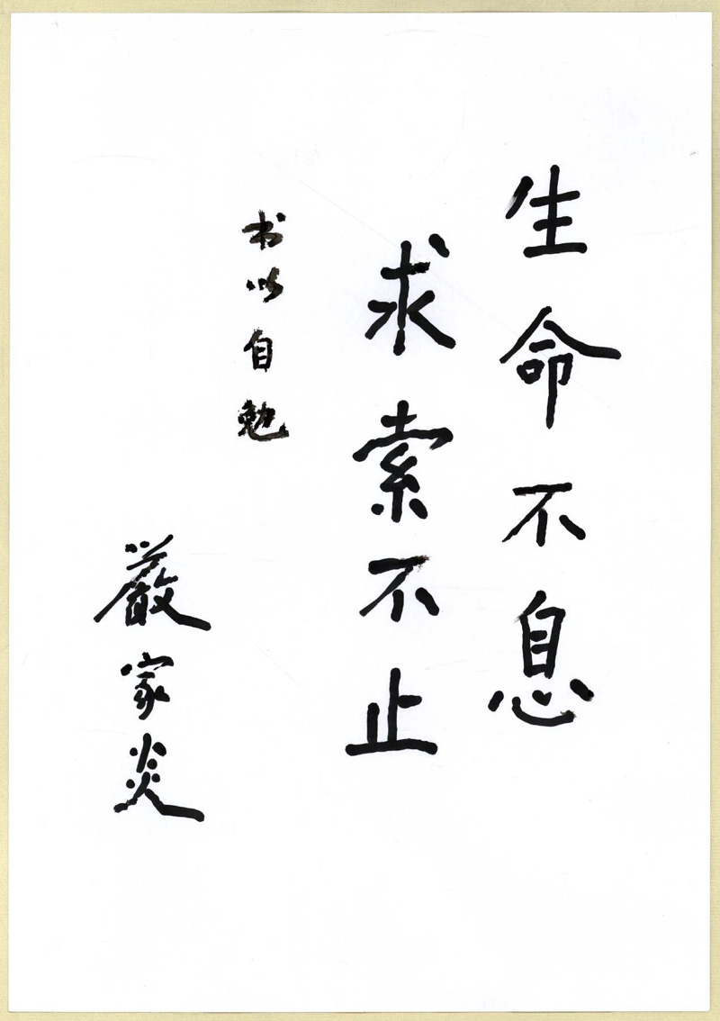 严先生手书“生命不息 求索不止”