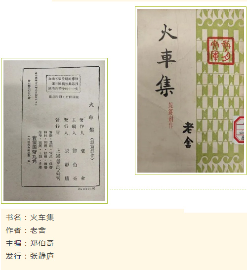 短篇小说集《火车集》收入老舍《“火”车》《东西》《人同此心》《杀狗》《我这一辈子》《一封家信》《一块猪肝》《浴奴》《兔》共9篇作品。