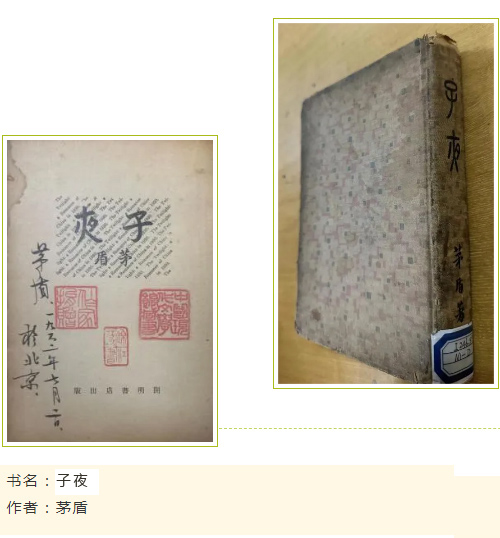 该书封面为布面精装,简洁大方。封面篆字题名为叶圣陶书写,字型淳朴,墨色匀称,入眼非常舒服。扉页将书名和作者姓名置于书页上方,并用英文“The Twilight:a Romance of china in 1930”打底。本册扉页有茅盾亲笔签名。