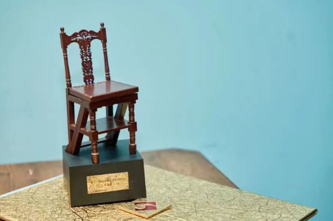 2023年,以唐弢书椅为原型的奖杯面世,取“学问当坐冷板凳,研究甘做他人梯”之意,期望青年学者能以书为伴,以学问为志向,以老一辈学者为榜样,在学术研究上不断精进。奖杯基座镌刻获奖者名字,并镶嵌中国现代文学馆徽标。当年托举起唐弢先生在典籍瀚海中的求索身影,升华为托举文学新生代的精神意象。
