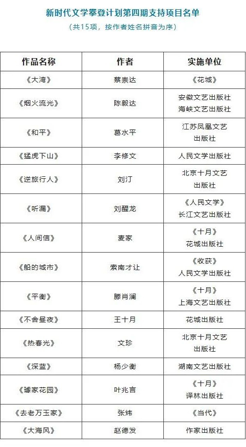 新时代文学攀登计划第四期支持项目名单公布