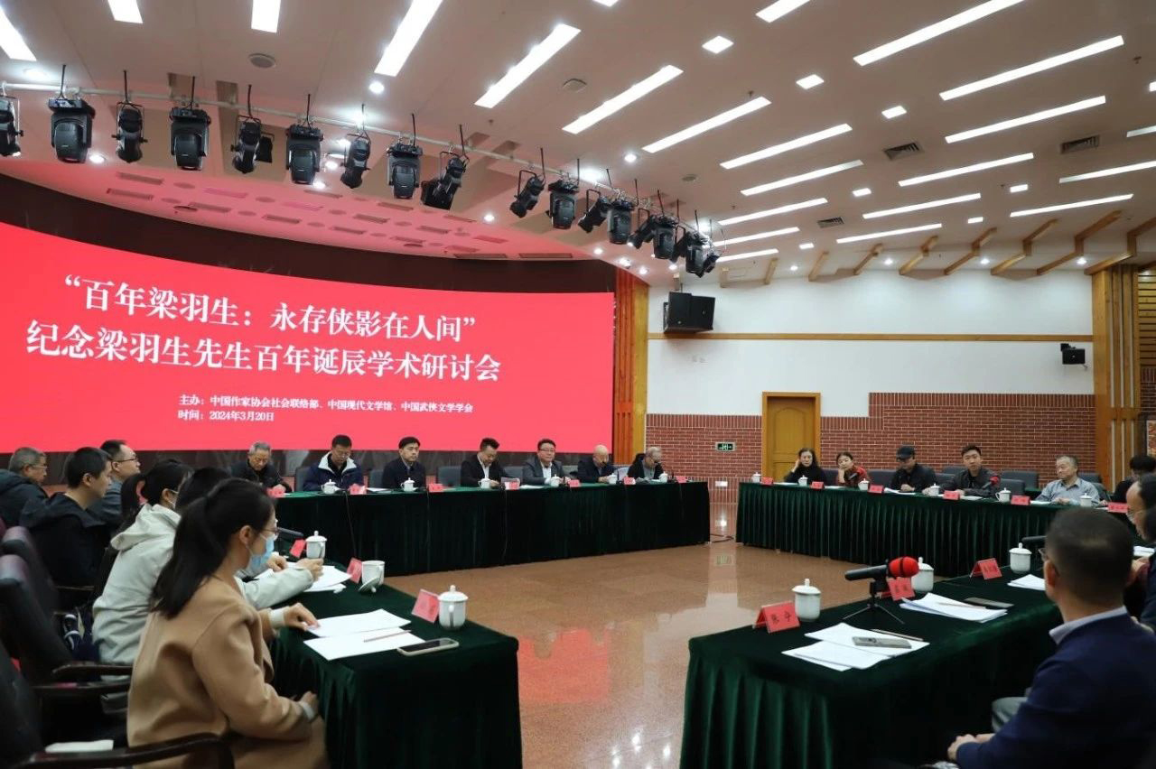 3月20日,在中国武侠文学巨匠梁羽生先生百年诞辰之际,由中国作协社会联络部、中国现代文学馆、中国武侠文学学会联合主办的“百年梁羽生·永存侠影在人间”学术研讨会在北京召开。来自全国的专家、学者、媒体人、武侠小说爱好者,梁羽生家乡代表等20余人,围绕梁羽生文学成就及其对后世的深远影响展开研讨。