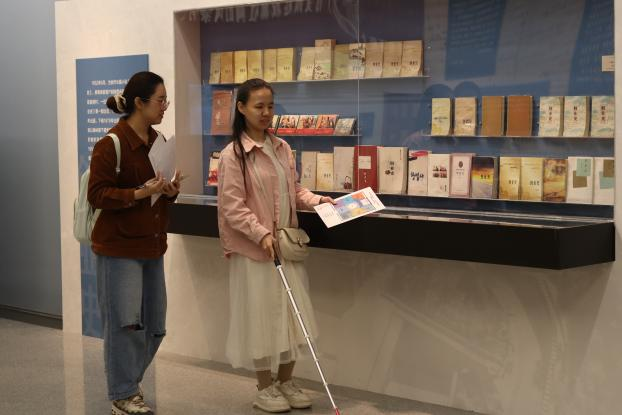 同时,也有同学反馈盲文导览册篇幅略长,可以改为二维码形式,以便更快获取信息;可以采用室内语音导航、增加触觉引路带等技术手段更好帮助视障人群顺畅观展。同学们的心声为现代文学馆进一步优化无障碍服务设施提供了宝贵的改进方向。