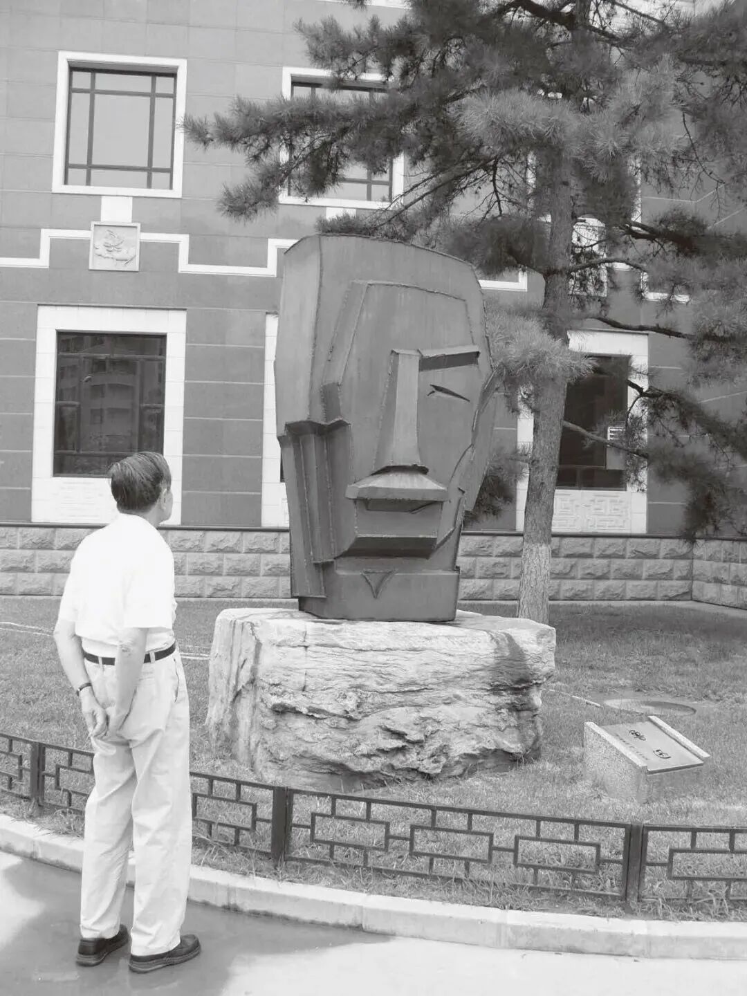 鲁迅头像是用铁片焊接成的,高二米多、安放在高约三分之二米的一块大石头上面,舒乙馆长说从设计到切割铁片到焊接到最后安装“都是熊先生亲自动手的。”
