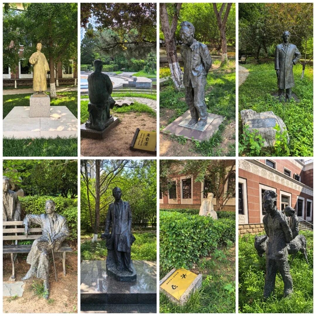 馆后面有一个相当大的花园,园中放了11个全身雕像。计有赵树理、丁玲、郭沫若、艾青、老舍、曹禺、叶圣陶、巴金、朱自清、茅盾与冰心。另外还放有沈从文的浮雕头像。
