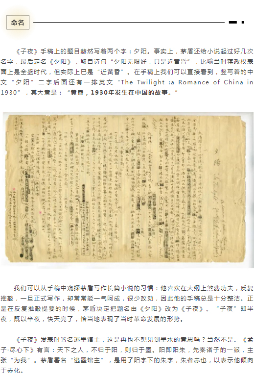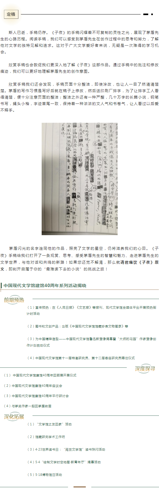 中国现代文学馆40周年馆庆倒计时——“让文物活起来”:茅盾《子夜》手稿档案解密