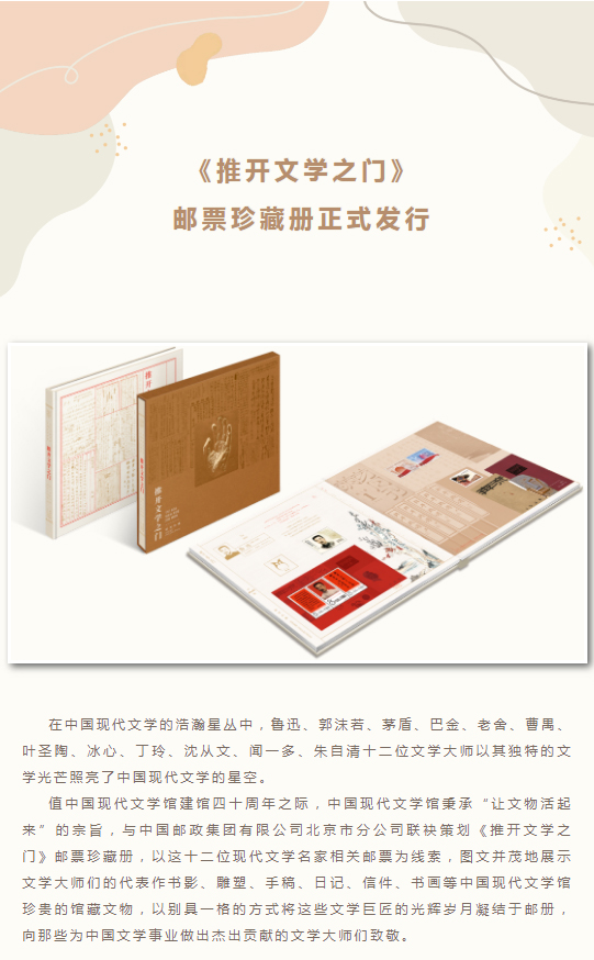 中国现代文学馆40周年馆庆倒计时——“让文物活起来”:《推开文学之门》邮票珍藏册发行