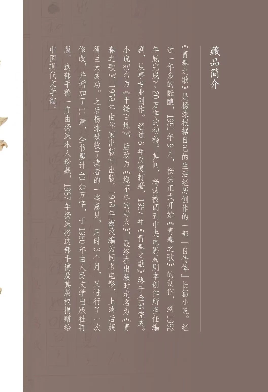 中国现代文学馆40周年馆庆倒计时——“让文物活起来”:杨沫与她的《青春之歌》