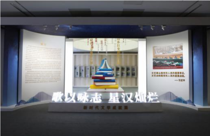 为了庆祝习近平总书记主持召开文艺工作座谈会并发表重要讲话10周年,2024年10月14日,由中国作家协会主办的“歌以咏志 星汉灿烂——新时代文学成就展”正式开幕。展览集中展现了文艺工作座谈会召开以来,在习近平总书记坚强有力的指引下,广大文艺工作者不辜负时代召唤、不辜负人民期待,创作出的文艺精品。